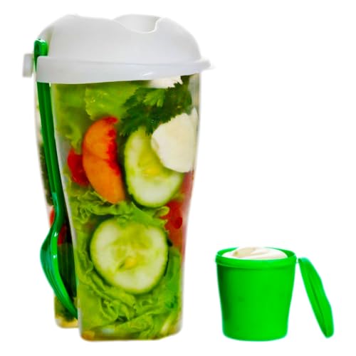 Facile à stocker: le support de vinaigrette est idéal pour le travail, les voyages ou même un pique-nique, nos ustensiles de cuisine sont parfaits pour les personnes de tous âges..Ake vos salons préférés ou les Gronola et avec du yaourt avec vous. Matière sûre des aliments: un récipient de vinaigrette à faire est composé de plastique de qualité alimentaire de qualité alimentaire, sans BPA, sûr et sain, fort et robuste..La conception anti-fuite empêche les déversements et les fuites, ce qui facilite la prise de votre salade et de vous habiller avec vous où que vous alliez. Convient pour des types de nourriture: un récipient à salade pour le déjeuner est idéal pour les céréales, le granola, le muesli, les bleuets, les mûres, les fraises avec du lait ou du yaourt..Également idéal pour transporter des fruits et légumes..Pas besoin d'apporter une autre fourche. 1000 ml Salade Shaker: La capacité de la tasse de salade est d'environ 1000 ml, répond à tous vos besoins de repas. L'ensemble de tasse de conteneurs à salade est livré avec une tasse de sauce et une fourchette, idéale pour le transporter. Vous pouvez profiter de votre temps de repas n'importe où. Gardez la tasse de shaker de repas à salade en forme: la vinaigrette à salade emporte la salade la plus fraîche avec vous pour vous faire profiter facilement à tout moment, plus de salades détrempées et continuer à manger en bonne santé..Pas d'odeur particulière, de scellage fort!.Plus de salades détrempées et continuez à manger en bonne santé.
