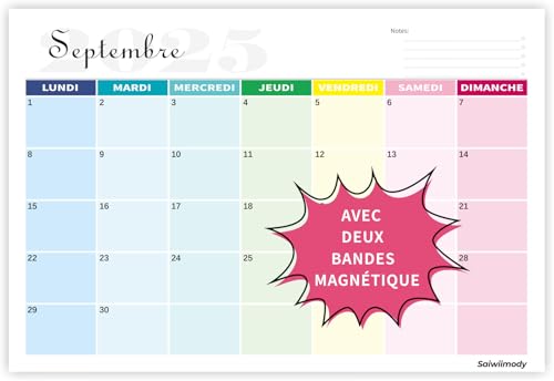 Calendrier 2026 Mural Magnetique Frigo (16 Mois) 31 x 21cm Familial Calendrier 2025 2026 Septembre 2025 à Décembre 2026 Planificateur Mensuel avec Jours Fériés pour OrganiserCalendrier 2026 Magnetique Frigo: Le calendrier avec des jours de différentes couleurs, il est facile pour tout le monde de suivre les jours de la semaine. Il peut vous aider à répondre à vos besoins quotidiens, restez au courant de votre emploi du temps sans effort. Grand Carré avec des Lignes: Calendrier mural 2026 a beaucoup d'espace pour écrire des rendez - vous, des réunions, des anniversaires, etc. Ces lignes carrées peuvent vous aider à écrire des choses de manière plus structurée, tout en étant assez compact pour s’adapter à votre frigo. Restez Organisé: Le calendrier 2026 mural de vous aide à suivre votre horaire de travail ou vos activités scolaires, qu'il soit placé sur le réfrigérateur dans la cuisine ou sur toute autre surface magnétique idéal pour rester organisé. Assez Structurer: Calendrier 2025 2026 détachable de qualité supérieure fabriqué à partir de papier premium ultra-épais, notre calendrier magnétique garantit une expérience d'écriture sans tracas sans aucun problème de fuite d'encre. Calendrier Mensuel: Magnetique calendrier mensuel de Septembre 2025 à Décembre 2026. Il vous permet de capturer et de suivre les tâches quotidiennes et les plans à long terme. Gardez tout sous contrôle et visualisez facilement vos activités quotidiennes et mensuelles.