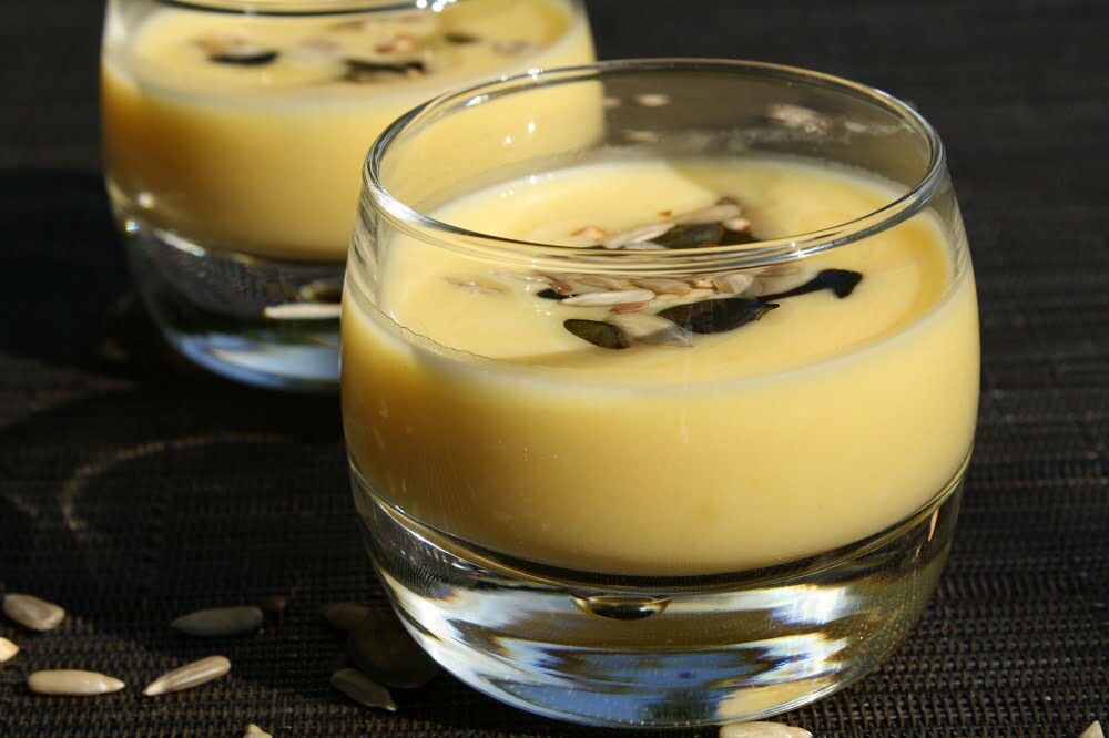 La crème de maïs se consomme chaude, servie dans un bol ou une verrine. Arroser de quelques gouttes de velours de balsamique Maille, vinaigre aromatique et velouté. Parsemer d’un mélange de graines (courge, lin, sésame, etc.).