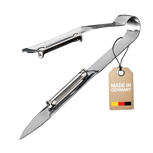 Double éplucheur pour asperges, particulièrement adaptée à l'épluchage des asperges, couteau aiguisé pour couper les extrémités des asperges Adaptation optimale aux contours des asperges grâce à la lame mobile, Epluchage deux fois plus rapide des deux côtés grâce au principe pratique des deux lames, Pas d'encrassement de la lame grâce à la séparation nette des tranches, Remplacement facile de la lame Éplucheur spécial : une fois que vous l'avez en main, vous pouvez éplucher avec le double éplucheur en un clin d'œil. Un autre avantage, par exemple pour les asperges, est que la deuxième lame s'oppose à la tendre lance des asperges, de sorte que les légumes ne se cassent pas Fabriqué en Allemagne, Très durable, Lavable au lave-vaisselle, Cependant, nous recommandons le lavage à la main pour garantir un tranchant durable de la lame Contenu: 1 x Westmark éplucheur d'asperges, Asparago, édition Monopol, longueur totale : 17,3 x 5,5 cm, poids : 37 grammes, matériau : acier inoxydable, couleur : argenté, 60723360