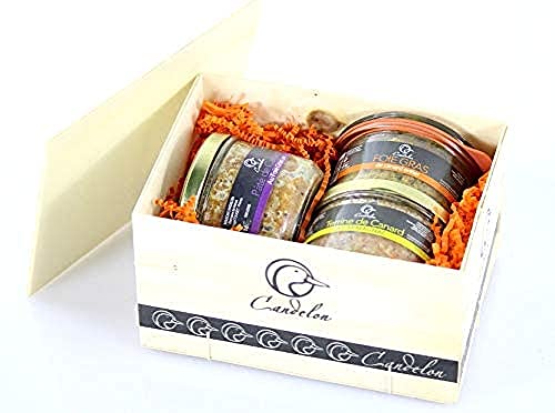 jemangefrancais.com - Coffret Gourmet autour du foie grasLe coffret spécial Gourmet avec tout le savoir faire du paysan Gersois, à retrouver : 1 verrine de foie gras IGP Gers en 100 g 1 verrine de pâté de canard au foie gras 30 ¨% en 180 g 1 verrine de Terrine de canard à l'Armagnac en 180 g Le tout joliment présenté dans un coffret bois avec frisure